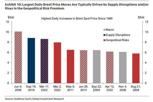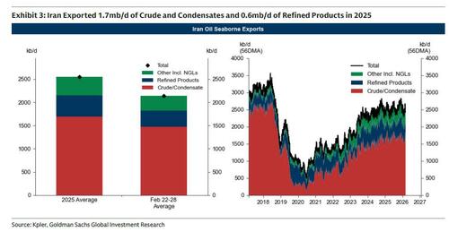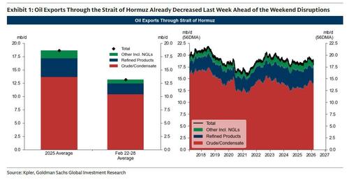 Ahead of what is likely to be chaotic trading in oil, which is already up well over 10% in weekend OTC trading, Goldman's trading desk including strategists Daan Struyven, Samantha Dart, Yulia Zhestkova-Grigsby and others, have shared their views on the risks to energy prices from the Iran war. We excerpt from the report (available to pro subs) below.