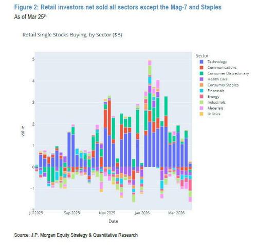 While broad market participation declined, and dips were not bought, single-stock activity especially was the weakest since December. Retail investors continued to buy the Mag-7 at moderate levels (consistent with their typical pattern)...