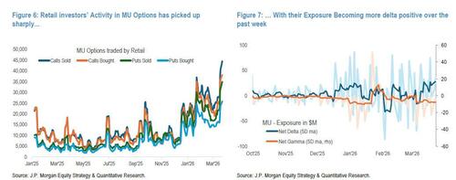 More broadly in options, MU posted the largest volume increase among top 10 names, pushing overall exposure slightly more delta-positive over the past week.