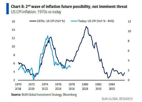 Which doesn't mean sell gold: aside from the historic performance in silver, Hartnett notes that gold remains in a secular bull intact in this new world order of debasement, populism, and fiscal excess. Gold remains attractive under-owned hedge; furthermore, great gold bull markets end with "big stuff" (end of Nixon in ‘74, Volcker rate shock in ‘80, end of EU debt crisis in ‘12, COVID vaccine in ’20). In this context, a US-China truce, central banks revaluing gold reserves, and Fed hikes to combat 2nd wave inflation...