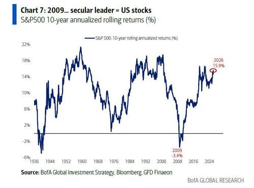 - 2009: Global Financial Crisis, era of QE, era of buybacks… new secular leaders US stocks (10-year rolling returns hit 90-year low in Feb’09)...