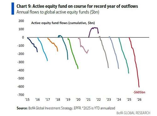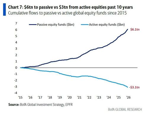 - Long-only equities: $46bn outflow…record weekly outflow (note past 10 years $3tn outflow from active equity funds vs. $6tn inflow to passive equity funds)