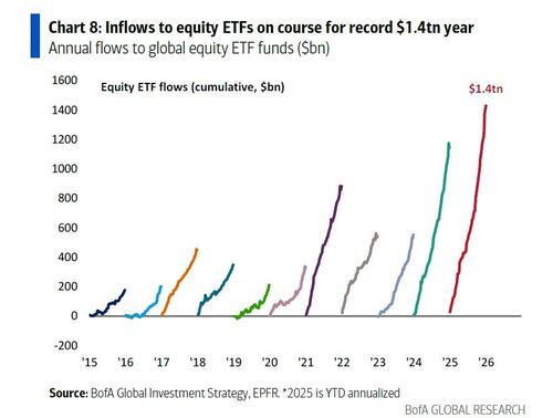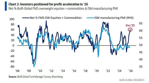 Last week, in his most recent Flow Show note, Michael Hartnett - who flipped fully-bullish around the time the Fed launched QE lite - wrote that "Markets Are Frontrunning 2026's "Run It Hot" Economy", and summarized his thesis in one of his zeitgeist quotes, to wit: “Fed QE, Nvidia chips to China, $2k stimmy checks, gas prices back below three bucks, no wonder we’re all max bullish.”