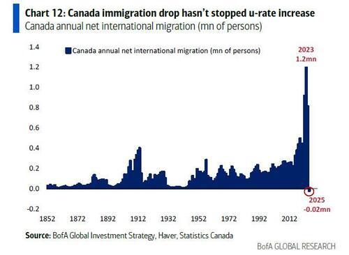 - 1. US u-rate at 5% driven by corporate cost cuts, AI (note youth U-rate up from 4.5% to 8%), and failure of immigration restrictions to stop job losses (note huge drop in Canada immigration has not stopped unemployment rate up from 4.8% to 6.8% past 3 years); tax cuts saved not spent not positive cyclicals.