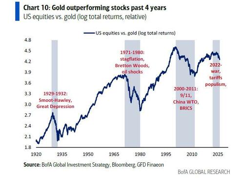 ... as a result of war populism, end of globalization, fiscal excess, debt debasement (Fed and Trump are set to add $0.6 tn of fresh QE liquidity in ’26 via T-bill, MBS buying/reinvestment) catalysts… it's why gold is outperforming bonds and US stocks past 4 years and none reversing