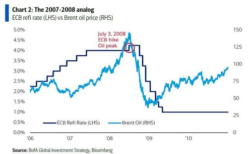 Aug '07 to Jul' 08 oil price $70/bbl to $140/bbl and subprime tremors began (BNP/Northern Rock/Bear Stearns); oil peaked Jul 3rd 2008, same day as ECB hiked 25bps, one of great policy mistakes of all time… 74 days later Lehman bust, GFC in full effect as credit trumped oil (collapsed to $40/bbl), ECB forced to cut 325bps; probability of ECB rate hike by Jun’26 now 75%, and Wall Street ominously trading ’07-‘08 analog.