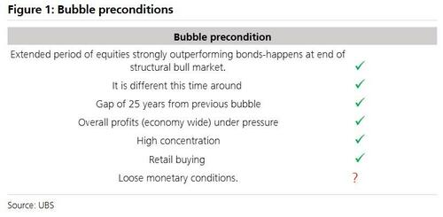 We have long argued that there are 7 preconditions for a bubble and if the Fed cut in line with the UBS forecast, then we have all 7.