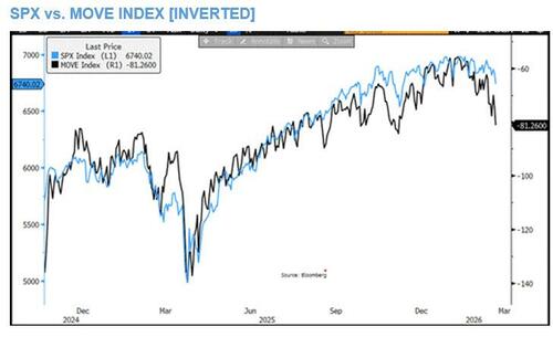 Turning back to day-to-day market moves, the JPM trader cautions that SPX options that expire 3/13 imply a 2.9% move this week (6933 or 6547).