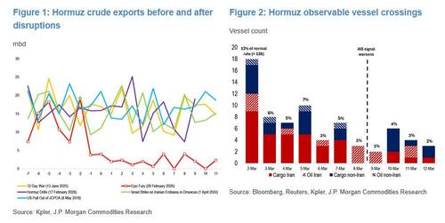 As JPM's chief commodity strategist Natasha Kaneva writes in her market note today (available to pro subs) commercial tanker activity remains extremely limited, with most movements dominated by Iranian vessels, many likely heading toward China.