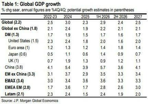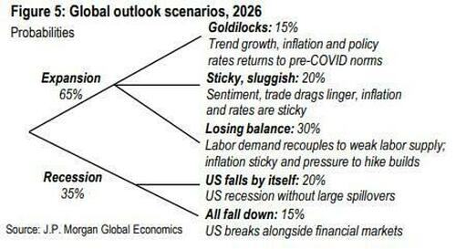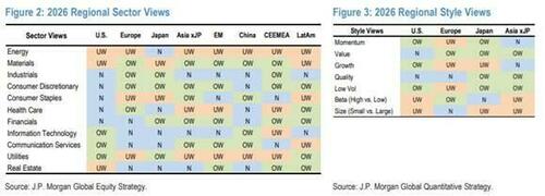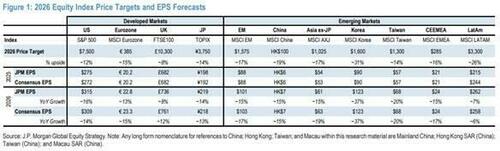 Last week JPMorgan, along with most other investment banks, published its various 2026 outlook reports. In a separate note, the bank's market intel desk led by trader Andrew Tyler, who has been stubbornly (and correctly) bullish global stocks and the economy for much of 2026, also published his own annotated cross-asset version of the bank's various 2026 outlooks.