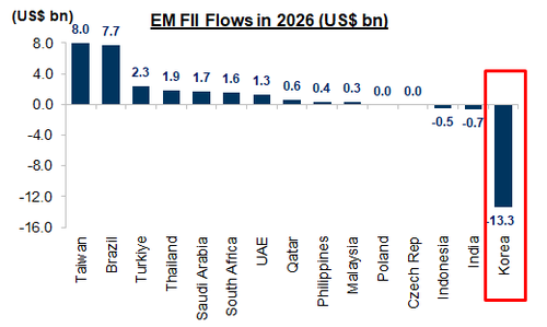 Meanwhile, foreigners continue to be a big driver of outflow, net selling Kospi stocks for 9 sessions in a row with US$3.5b alone today (after a record sale last week), mostly driven by tech and transportation equipment.