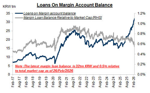 Overnight, the Korean stock market (where just two memory stocks account for roughly 40% of the Kospi) suffered its worst day since the August 2024 Carry Trade crash (worse than last year's Liberation Day) plunging -7.9%, after returning from a long weekend break. The move lower was so unrelenting it triggered multiple circuit breakers.