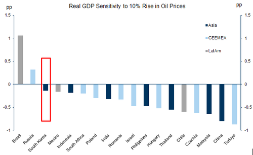 While uncertainties for higher oil prices negatively impact most EM economies, Korea is amongst the least affected. In addition, with strong pricing power, SK Hynix and Samsung Elec are likely to pass through costs increases.
