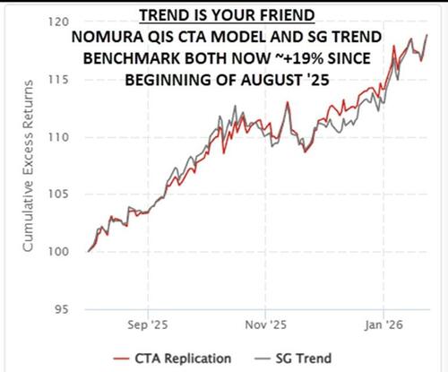 And being richly rewarded for sticking with these runners, both the Nomura QIS CTA model and the SG Trend benchmark are each ~+19% since start of August ‘25