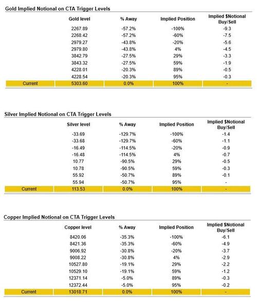 CTA trigger levels on at least initial time series signal flip levels across key “trend” positions in equities, metals and USD: