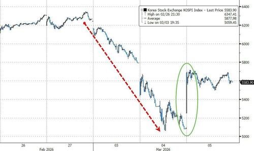 The KOSPI rebounded sharply, up roughly 9% from yesterday’s Asia close as the AI hardware trade appeared to find a near-term low (AVGO +5% after-hours helps).
