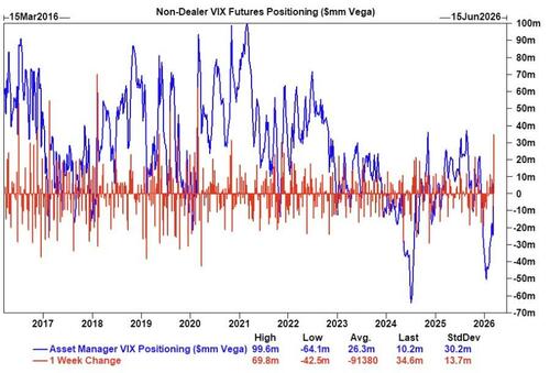 After beginning the year near record short levels, asset manager VIX positioning has reversed sharply higher over the past week, with the move now screening alongside prior major volatility episodes: