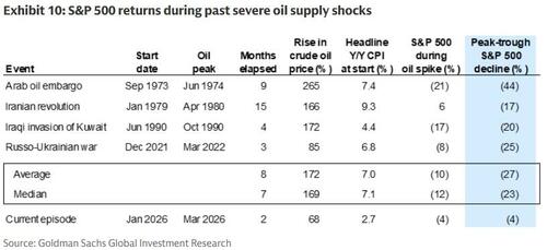 History also reinforces the downside risks if the oil shock were to persist. During the major oil supply shocks of the past several decades – including 1974, 1980, 1990, and 2022 – the S&P declined by a median ~12% during the oil spike, with a median peak-to-trough drawdown of roughly ~23%. That said, the current backdrop is not as structurally vulnerable as many of those episodes given lower oil intensity in the US economy and significantly higher domestic energy production.