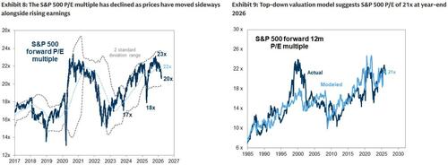 GS Research continues to emphasize that the distribution of outcomes for equities has become increasingly skewed to the downside. Elevated valuations, geopolitical uncertainty, and tighter financial conditions increase the probability of larger drawdowns even if the base case remains one of continued earnings growth. In a downside growth shock scenario where the market begins to price a meaningful deterioration in the economic outlook, the S&P could fall roughly ~5% further toward ~6300, consistent with a decline in positioning and a compression in the equity multiple toward ~19x.
