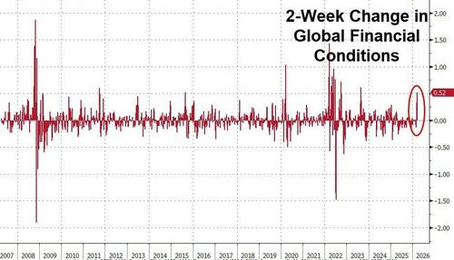 The GS Global FCI has risen more than 50bps over that span – the strongest tightening impulse since August 2023 and one of the largest moves outside of true crisis periods.