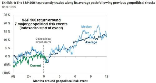 Encouragingly, the market response so far has still broadly followed the historical playbook around geopolitical events. The S&P is down roughly ~5% from its January highs, broadly tracking the average path following past geopolitical shocks, while investor conversations have become noticeably more cautious and positioning has started to adjust beneath the surface.