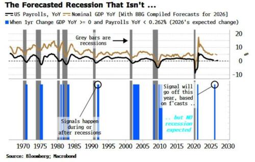 The expectation is that AI will lead to a productivity-driven increase in economic growth this year, without also sinking employment. But the anticipated combination of rising real GDP, slowing inflation and improving payrolls has only ever occurred during or after economic slumps.