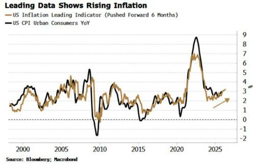 That’s hard to square with the increasing government dominance of monetary policy. The pro-cyclical easing that’s expected to see off a recession is also likely to inflame price pressures. Inflation risks are already rising regardless of the threats to Fed independence, as shown by my leading indicator consisting of manufacturing data, money growth and metals prices.