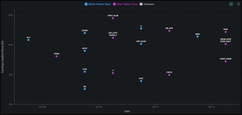 Next week brings both CPI and NFP on the macro side, alongside a heavy slate of software and crypto-adjacent earnings. Implied moves for several of these names are pricing in 10–15% swings.