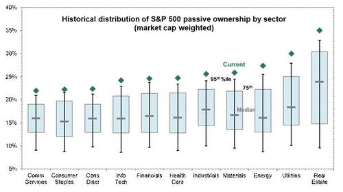 ...we’ve identified the historical distribution of sector ownership by passive funds below: