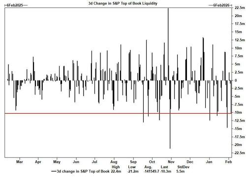 S&P Top of Book liquidity has decreased to $4.11mm - or 333% - from the YTD average of $13.69mm.