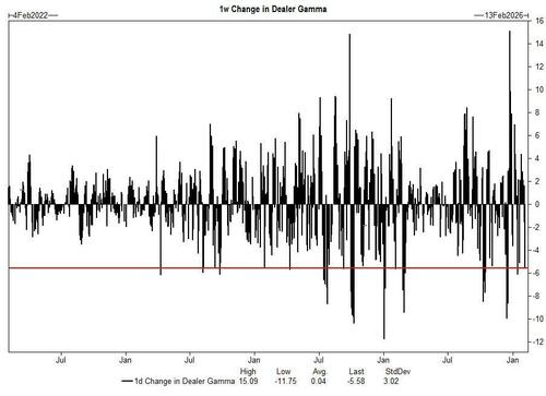 After sitting in a dealer long gamma pocket that prevented the market from breaching the 7k level, this week’s selloff has flipped dealers to flat/short gamma positioning right around here.