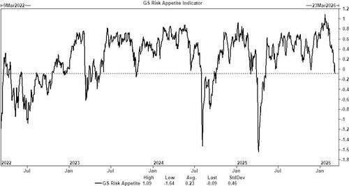 ... while the Goldman risk appetite indicator has also tumbled to liberation day levels.