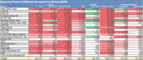 According to Goldman's trading desk, due to the recent spike in volatility, CTAs are now sellers of equities in every scenario over the next week and month, with Goldman adding ominously, that "sell estimates over the next week are some of the largest we have seen." Here is the snapshot of conditional CTA Flows: