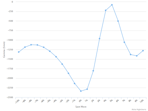 Regardless of whether the market moves lower or higher, gamma will remain negative for the foreseeable future, suggesting a period of heightened volatility ahead.