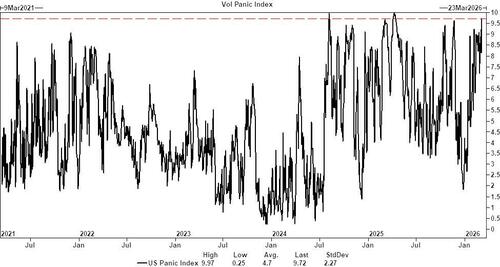 Why is liquidity is low? Because nobody has any conviction right now: the Goldman vol panic index is around the highest levels ever recorded..