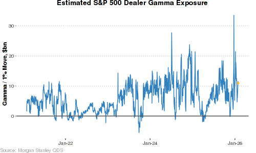 We flagged previously that S&P 500 option dealers are long $7-8bn of gamma / 1% move at spot (or about $10bn of delta demand with SPX at -1.4%), which can provide some intraday cushion to US equities...