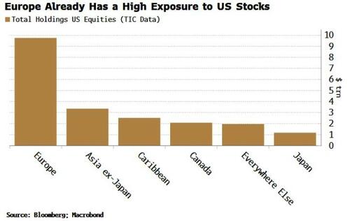 Moreover, the continent is already the largest foreign holder of US stocks, with almost $10 trillion of them.