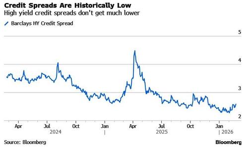 He’s not wrong to be concerned, as Bloomberg macro strategist, Simon White, details below, but you wouldn’t know it from looking at credit spreads, which are back near historic lows.