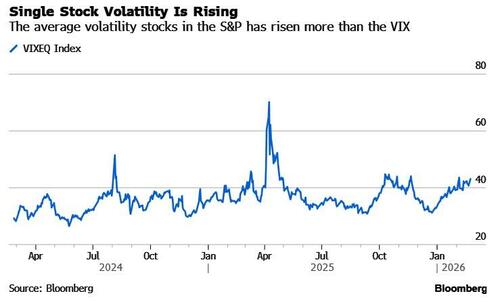 Listed credit spreads, too, are encountering stress from the enormous sums being spent on AI infrastructure. They also face a rude awakening from rising single-stock volatility. The equity of a company is analogous to a perpetual call option on the solvency of the firm. In modeling credit risk, investors and traders often use index equity volatility as an input. But such volatility could jump much higher and become more reflective of elevated single-stock volatility if index correlation – currently quite low – were to rise.