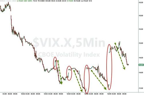 VIX has been edging higher in the last couple of days - with an opening surge met with a wall of vol-sellers...