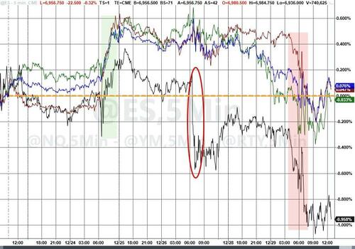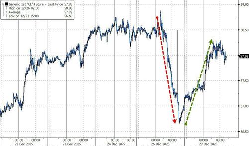 While crude prices were higher (as some suggested the peace talks are in trouble after Zelensky took a shot at Putin's palace), they also reflect the low liquidity period, erasing much of Friday's pre-Z plunge...