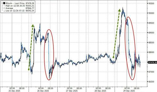 It wasn't just precious metals that were punished, crypto markets were pumped (BTC back above $90k) and dumped (BTC back below $87k) within 12 hours...
