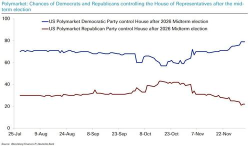 Could we get more tariff relief ahead of the midterm elections…? Already, we’ve seen exemptions for products like coffee and beef, and the political incentive to lower inflation will rise as the midterms approach. The Democrats are currently the favourite to retake the House of Representatives and many cite the cost-of-living concerns for recent Democratic election successes…