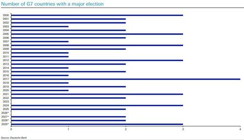 Political stability beckons…? Assuming no snap elections are held, 2026 will be just the 2nd time in the 21st century with no major G7 elections scheduled. That would make a change from the last couple of years, which have seen new administrations in the US, UK and Germany.