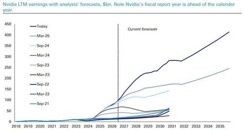 Nvidia earnings progression over the last three years has been phenomenal. But expectations for the next 10 years are equally so. What if the earnings forecasts flatten considerably? It would question the whole AI trade and global market optimism..