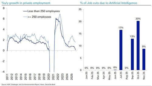 Are AI-related job losses set to pick up in 2026… small business hiring is really struggling, and larger corporates are picking up the pace of AI adoption? Could unemployment rise for a while with the economy growing? Then more negative feedback loops could emerge.