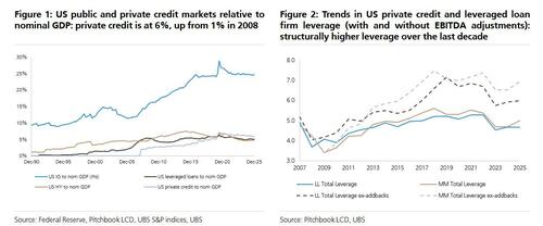 To UBS all this "raises concerns about capital adequacy and loss absorption in a downturn, particularly if defaults spike and valuations collapse." In short, once the private credit trigger hits, the contagion will be fast, brutal and will culminate with yet another Fed bailout .