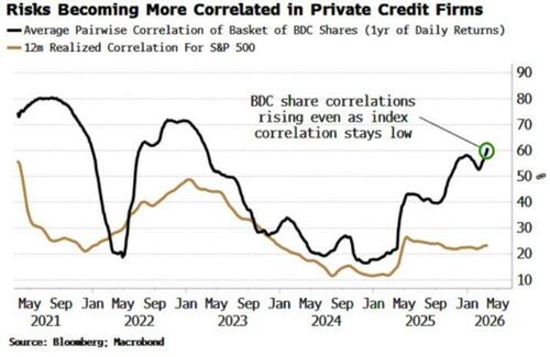 Private credit is supposed to be a portfolio diversifier, but during economic and financial shocks, correlations start to move toward one. Common drivers such as interest rates start to affect all assets similarly.