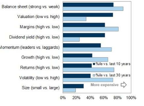 Equity factor valuations relative to history