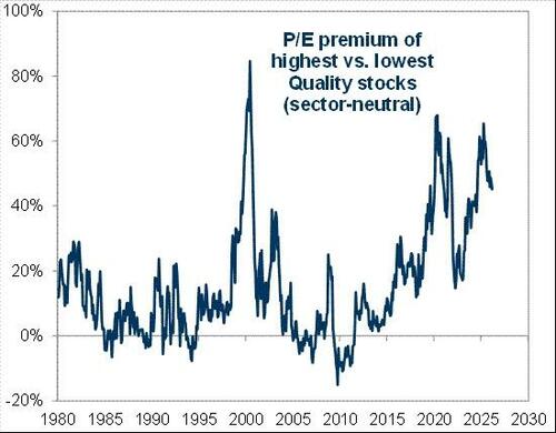 This could hurt quality stocks where P/E premium of the highest vs lowest quality stocks is still well off the lows.